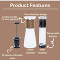 פרנץ' פרס ייחודי מבית PLANETARY DESIGN, עשוי מזכוכית עמידה, עם חבק עור מעוצב להשלמת מראה יוקרתי. מתאים להכנת 500 מ"ל של קפה או תה עשיר בטעם ואסתטיקה.